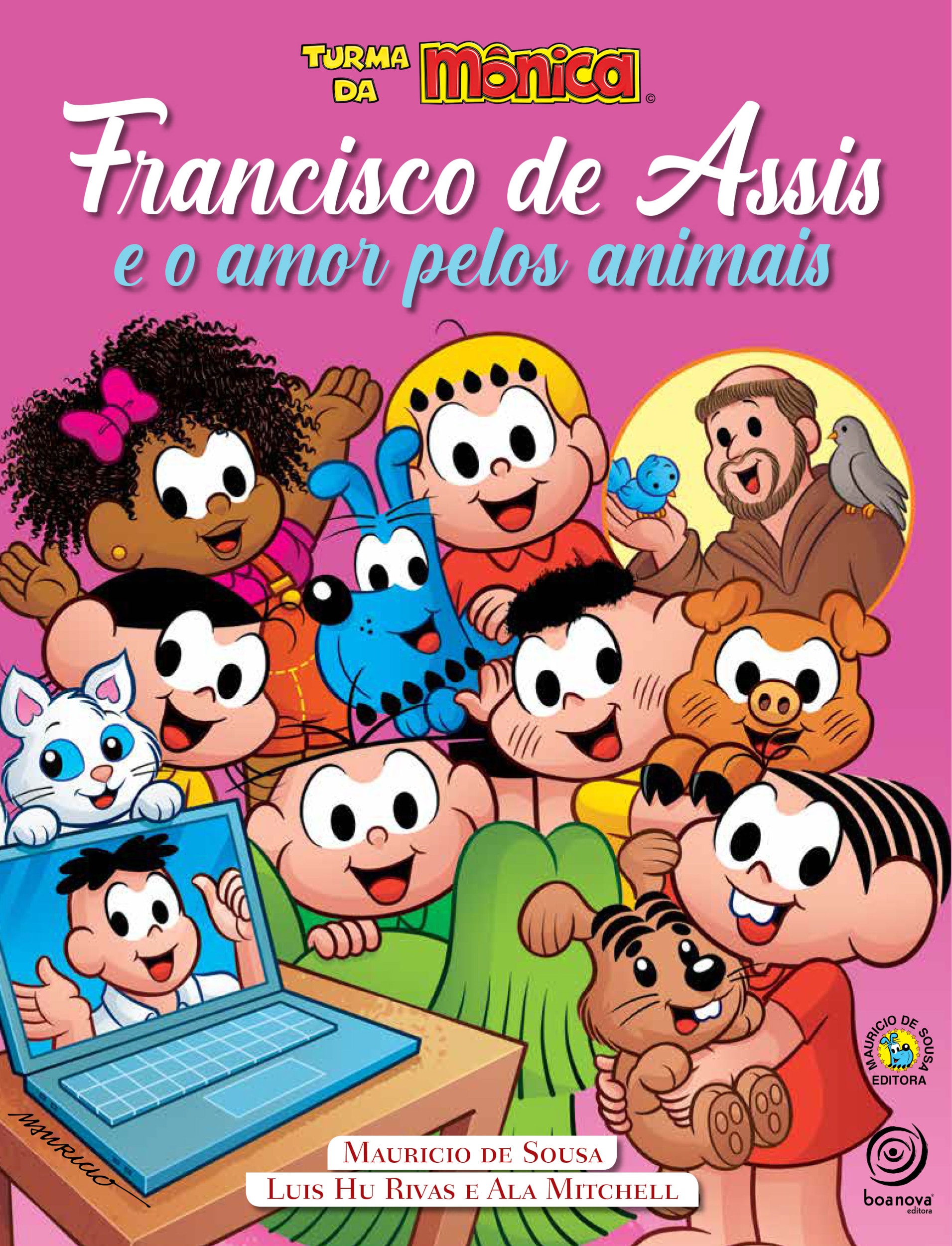 Neste livro, a Turma da Mônica faz uma live com André, primo do Cascão, apresentando para as crianças as mais belas lições de Francisco de Assis, que todos podemos usar em nosso dia a dia. Francisco de Assis e o amor pelos animais traz lindas historinhas com nossos irmãos bichinhos, contadas de forma divertida com os personagens mais queridos do Brasil.
