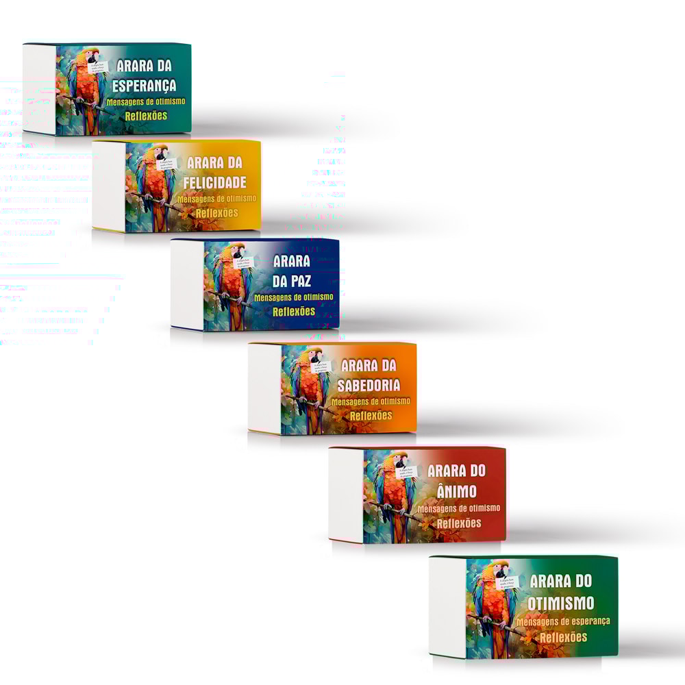 Kit Araras de Mensagens – 6 Volumes | 540 Cartões Motivacionais . Este kit reúne 6 coleções de mensagens especialmente criadas para trazer inspiração e bem-estar ao dia a dia. As mensagens podem ser retiradas aleatoriamente e lidas em qualquer momento, oferecendo motivação imediata e palavras de otimismo de forma simples e prática. Conteúdo do kit: • 1 Arara da Esperança – 90 mensagens • 1 Arara da Felicidade – 90 mensagens • 1 Arara da Paz – 90 mensagens • 1 Arara da Sabedoria – 90 mensagens • 1 Arara do Otimismo – 90 mensagens • 1 Arara do Ânimo – 90 mensagens Total: 540 mensagens em pequenos cartões. Características: • Mensagens curtas, objetivas e de fácil leitura • Conteúdo voltado ao bem-estar, reflexão e fortalecimento emocional • Formato prático para uso diário ou para presentear • Produto físico, ideal para leituras rápidas e uso contínuo Indicação: Perfeito para quem busca incentivo diário, leveza e motivação em pequenos gestos.