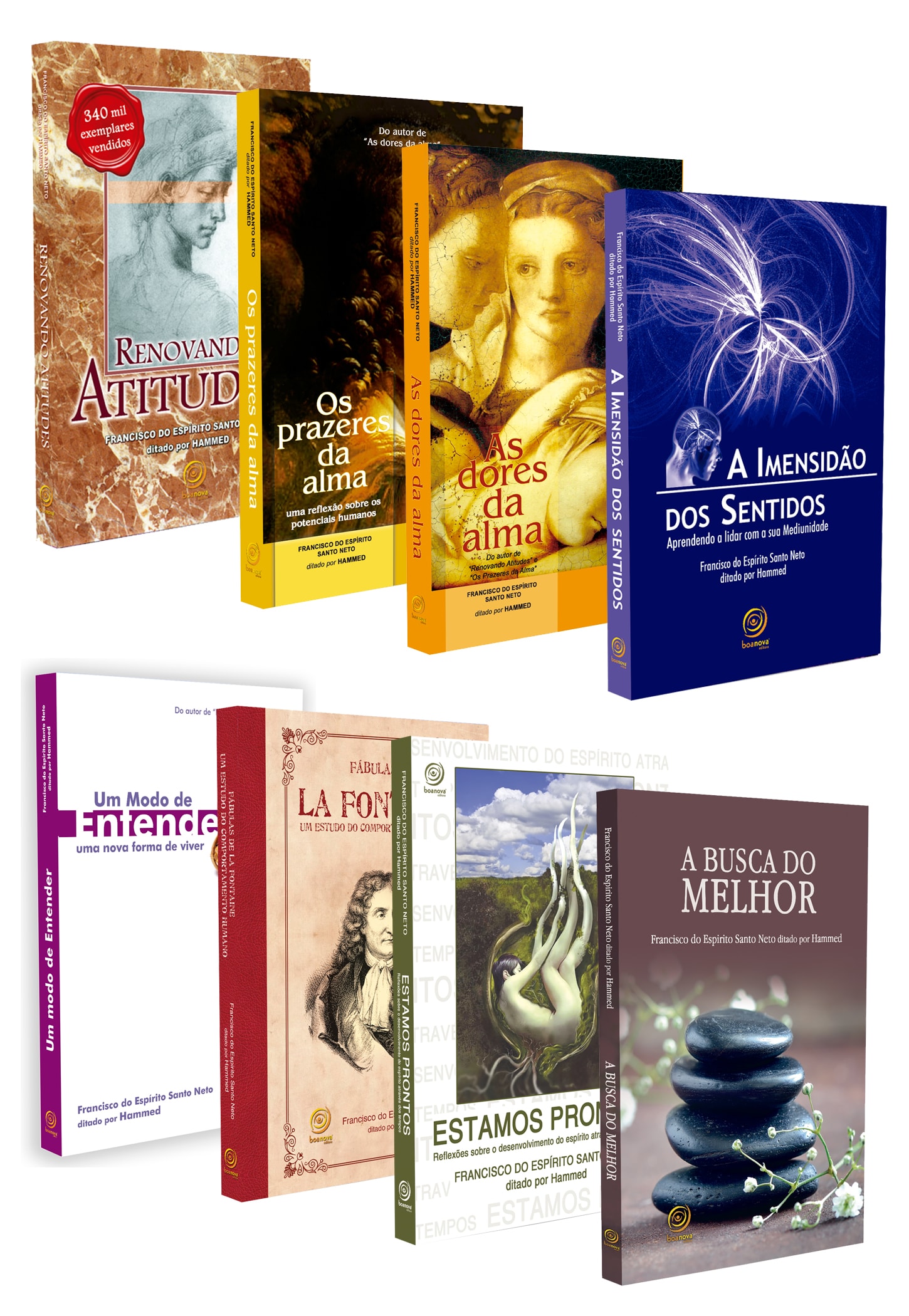 Esta coleção contém 8 livros ditados por Hammed ao médium Francisco do Espirito Santo Neto: Renovando Atitudes | Os Prazeres da Alma | As Dores da Alma | A Imensidão dos Sentidos | Um Modo de Entender - Uma Nova Forma de Viver | La Fontaine e o Comportamento Humano | Estamos Prontos | A Busca do Melhor.
