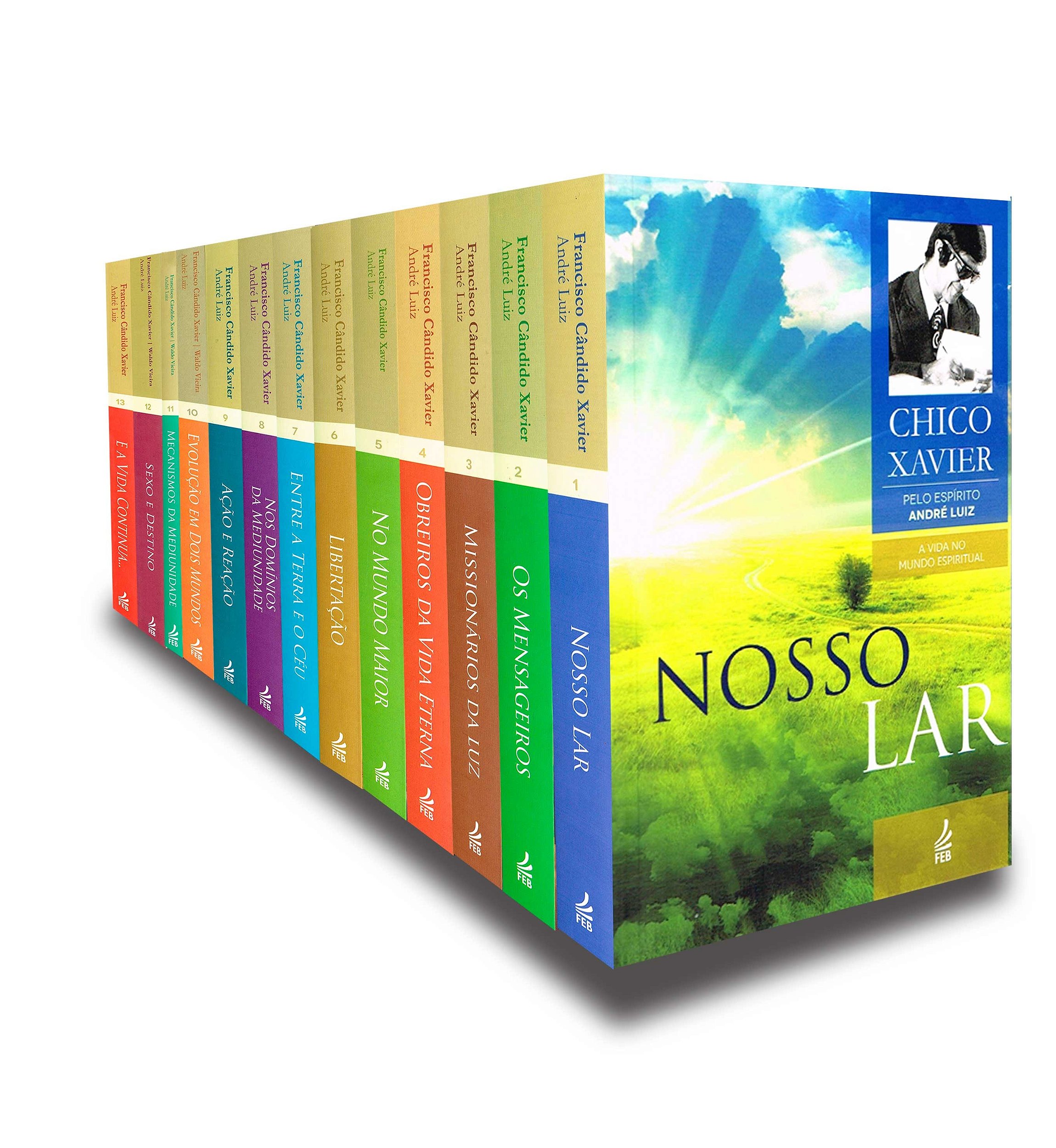 Esta coleção contém: Nosso Lar - 320 páginas Os Mensageiros - 328 páginas Missionários da Luz - 382 páginas Obreiros da Vida Eterna - 328 páginas No Mundo Maior - 272 páginas Libertação - 288 páginas Entre a Terra e o Céu - 304 páginas Nos Domínios da Mediunidade - 296 páginas Ação e Reação - 304 páginas Evolução em Dois Mundos - 248 páginas Mecanismos da Mediunidade - 184 páginas Sexo e Destino - 376 páginas E a Vida Continua... - 256 páginas