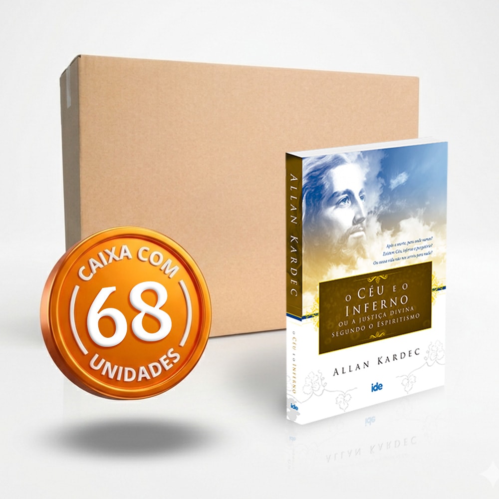 CAIXA COM 68 EXEMPLARES O CÉU E O INFERNO - EDIÇÃO ECONÔMICA. Econômica, porque é confeccionada com papel imprensa e tem um melhor aproveitamento da área de impressão, o que significa um menor número de páginas, sem modificação do conteúdo. Qual o Destino do Homem após a Morte Física? Quais as causas do temor da morte? Existem o Céu e o Inferno? A antiga crença nos anjos e demônios merece crédito? Como procede a justiça divina?